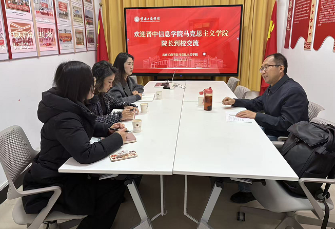 为深化马克思主义理论学科建设,推动思政课程高质量发展,学习合格评估工作经验,加强校际之间的经验互鉴与资源共享,11月21日,晋中信息学院马克思主义学院院长杨凯赴云南工商学院马克思主义学院开展学术交流活动。云南工商学院马克思主义学院院长勾英热情接待,双方围绕本科教学合格评估、思政课建设、教学比赛备赛等核心议题展开深度研讨。