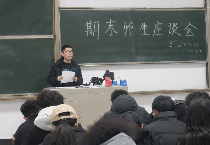 12月29日,马克思主义学院在5教106教室召开2025-2026学年第一学期期末师生座谈会。学院形势与政策教研室主任张鑫宇、教师成思思及各年级学生代表齐聚一堂,以“深化教学改革、提升育人质效”为主题,围绕本学期思政课教学情况展开深入交流。