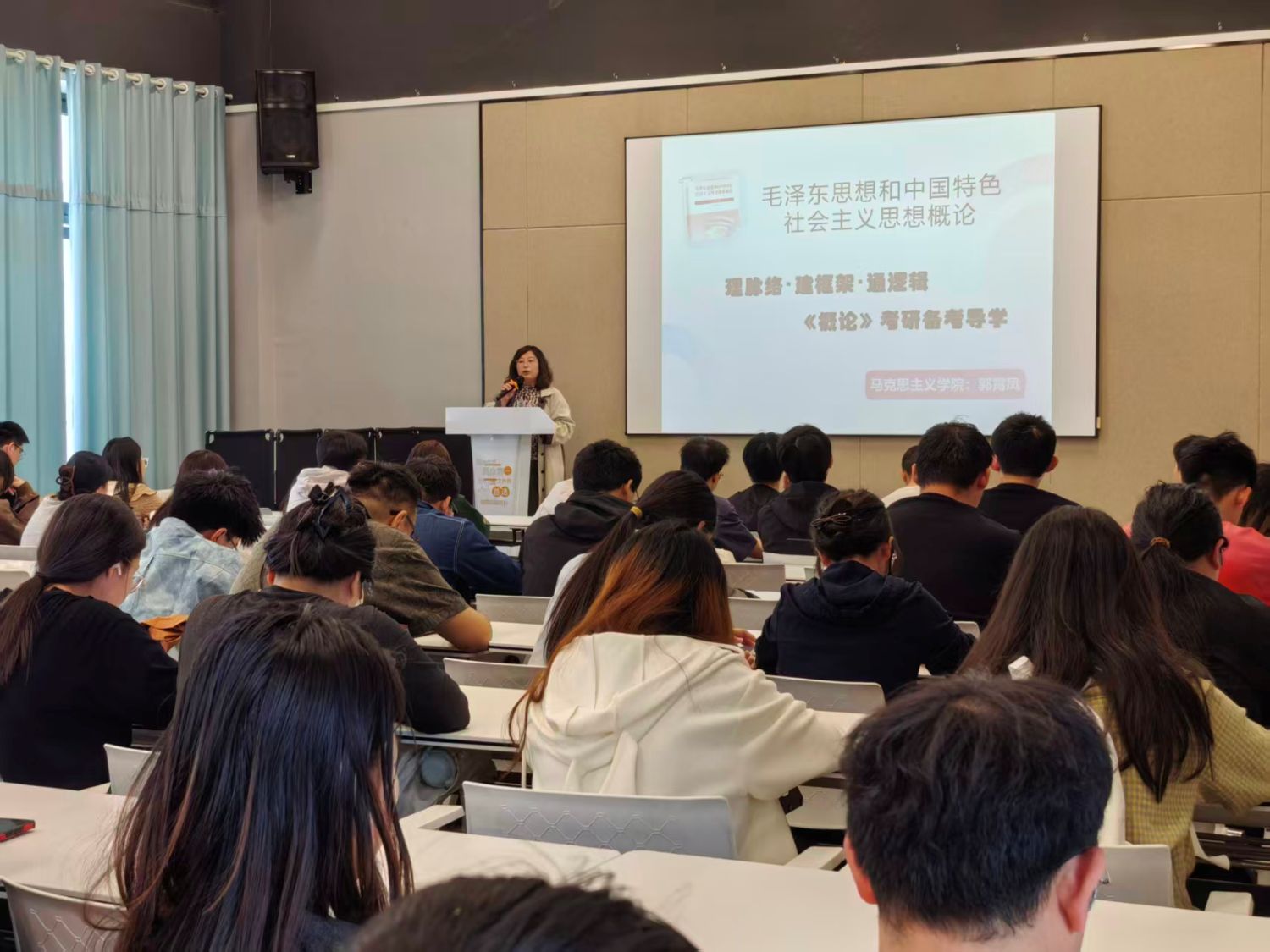 2026年4月15日13:00-15:00,研读《概论》·筑牢思想根基活动在上河书院208顺利举行。本次主讲嘉宾由马克思主义学院郭霄凤副教授担任。郭教授围绕《毛泽东思想和中国特色社会主义理论体系概论》课程,为备考学子梳理知识脉络、搭建复习框架、贯通理论逻辑,精准解析考研命题规律与备考方法,助力考生高效备战考研思想政治理论。