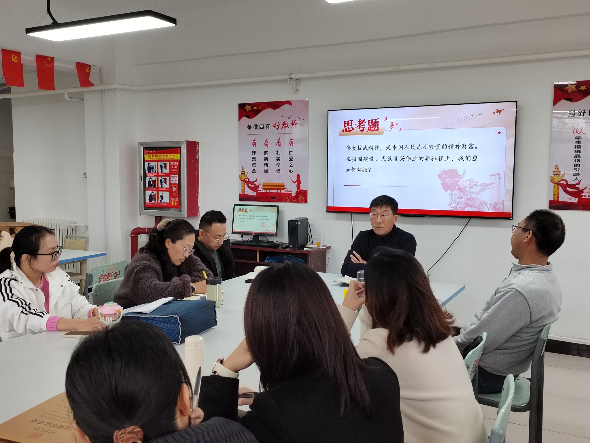 随后,与会教师围绕此次备课内容展开了热烈的讨论。郭慧毅老师从激发学生情感共鸣的角度出发,建议教学设计应通过历史与现实的联系,将抽象精神转化为可感画面,引导学生理解抗战精神的当代生命力与传承意义。