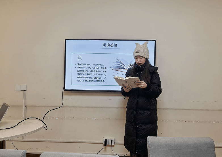 随后,任永霞老师以“以长远眼光锚定成长方向”为核心主题,分享阅读感悟,她鼓励学生在学习和生活中不被眼前利益迷惑,践行“流水不争先,争的是滔滔不绝”的长远思维。同时,为帮助学生提升阅读实效,她还现场传授“从厚到薄、从薄到厚”的读书方法。“从厚到薄是由表及里提炼精华,从薄到厚是融会贯通拓展延伸,唯有二者结合,才能激活知识的生命力。”她呼吁学生以持续学习和创新精神挑战自我,在长期积累中追求更高目标。