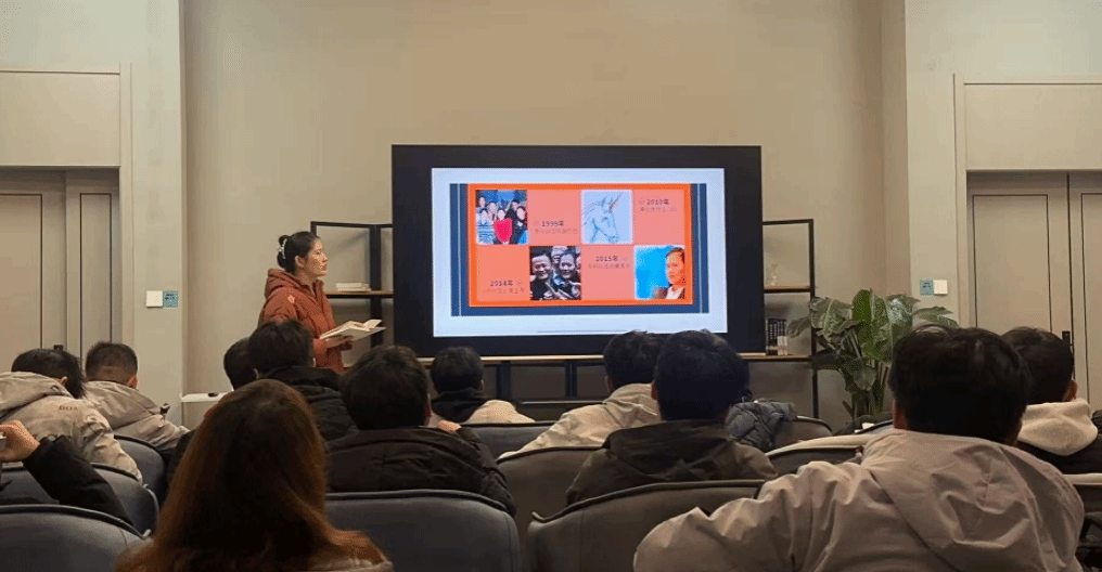 活动伊始,高老师以“榜样引领,汲取力量”为切入点,为同学们系统讲解了彭蕾的个人成长履历与《彭蕾传》核心内容。从深耕职场坚守初心,到勇挑重担助推企业发展,从践行责任担当到坚守价值底线,不仅让同学们对传记主角形成全面认知,更引导大家深刻感悟:优秀人物的成功,离不开坚定的理想信念、务实的工作作风和强烈的责任担当,筑牢青年学子“明大德、守公德、严私德”的思想根基,为后续深度研读夯实基础。