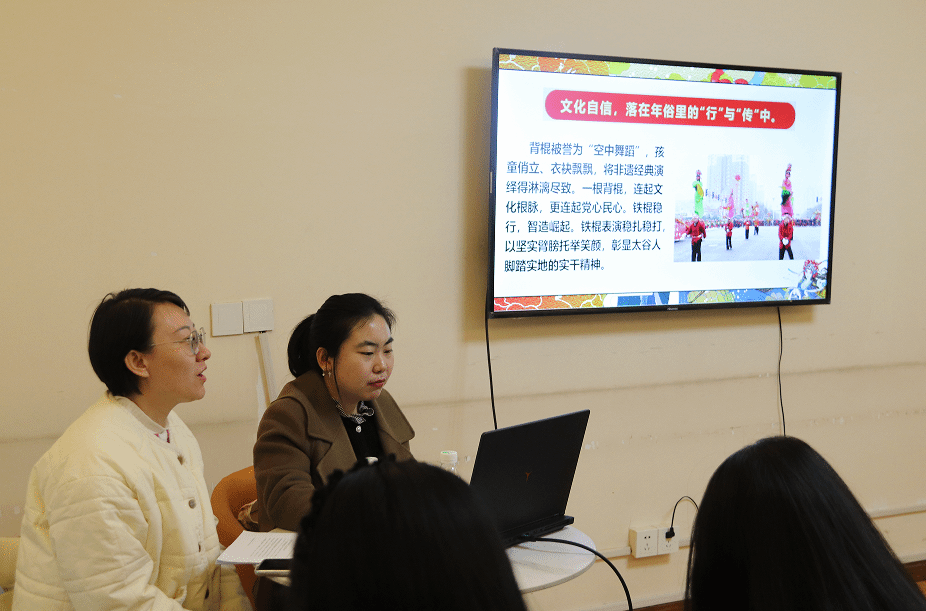 在交流分享环节,师生围绕“年俗里的文化自信”展开探讨。当谈及晋中市社火节上260名太谷籍返乡大学生志愿者的精彩展演时,同学们深受触动:这群青年放弃春节休息刻苦排练,将传统挖棍、背棍、铁棍技艺与现代舞蹈相融合,用青春之姿诠释民俗魅力与志愿担当,完美展现了青年一代对传统文化的传承与创新。大家纷纷表示,以往课本中的传统文化是抽象的文字,而如今鲜活的年俗展演、沉浸式的文化体验,让自己真切感受到中华文化不是尘封的古董,而是流淌在血脉里的传承,是鲜活在生活中的烟火。